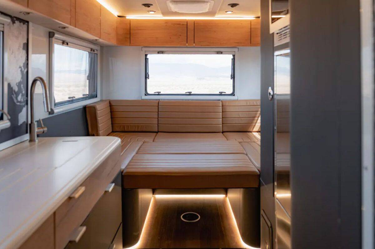 一旦踏进内部GXV Hilt车室内,你将会感觉进入一个奢华的小套房。 它的内部交融了现代、可继续资料,并具有能提高日子体会的接口。 定制的后支架和储物体系保证了满足的空间来寄存装备,而用餐区兼起居区的L形沙发可舒适地包容四到五名成年人,并在需求时快速转变为大床。